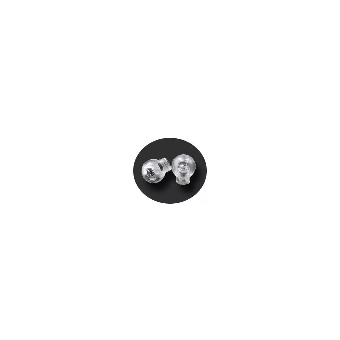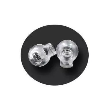 Set de 2 bloqueurs-stoppeurs de lacets, version boule, en transparent.