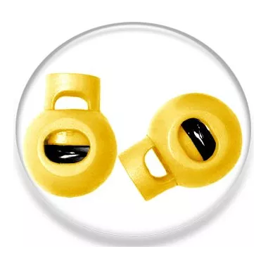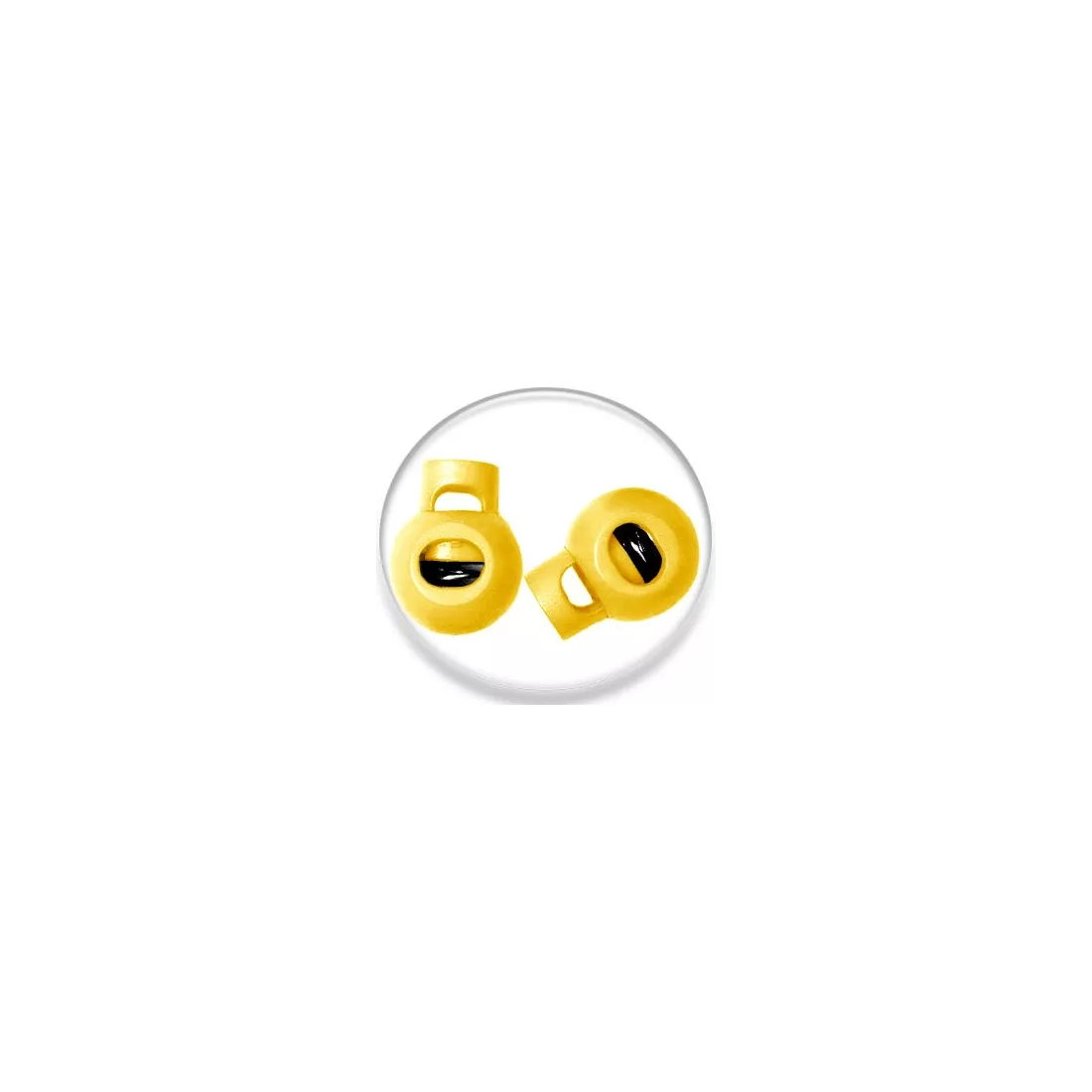 Set de 2 bloqueurs-stoppeurs de lacets, version boule, dans un chaud coloris jaune soleil.
