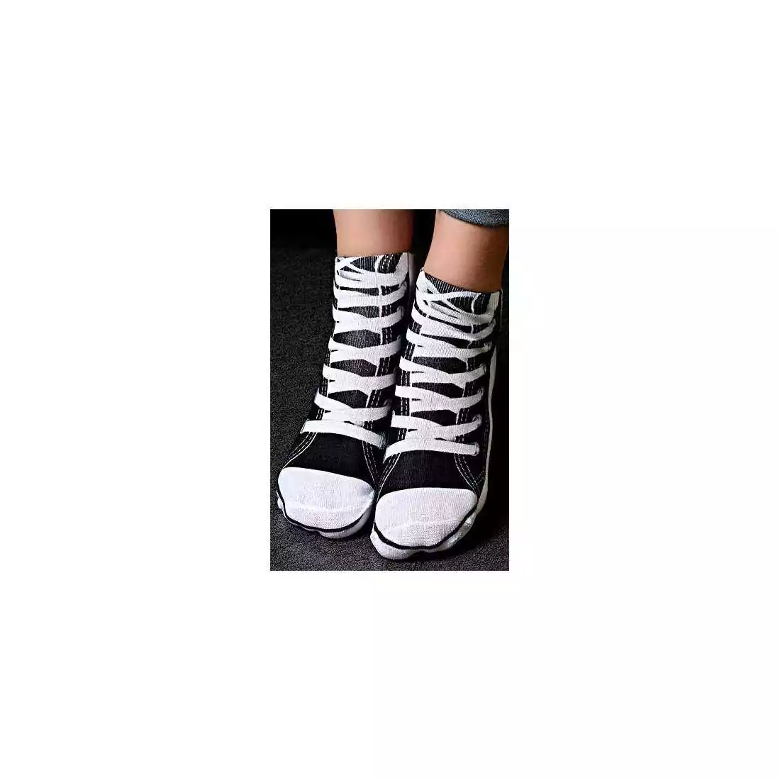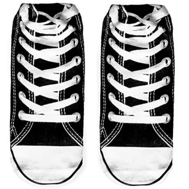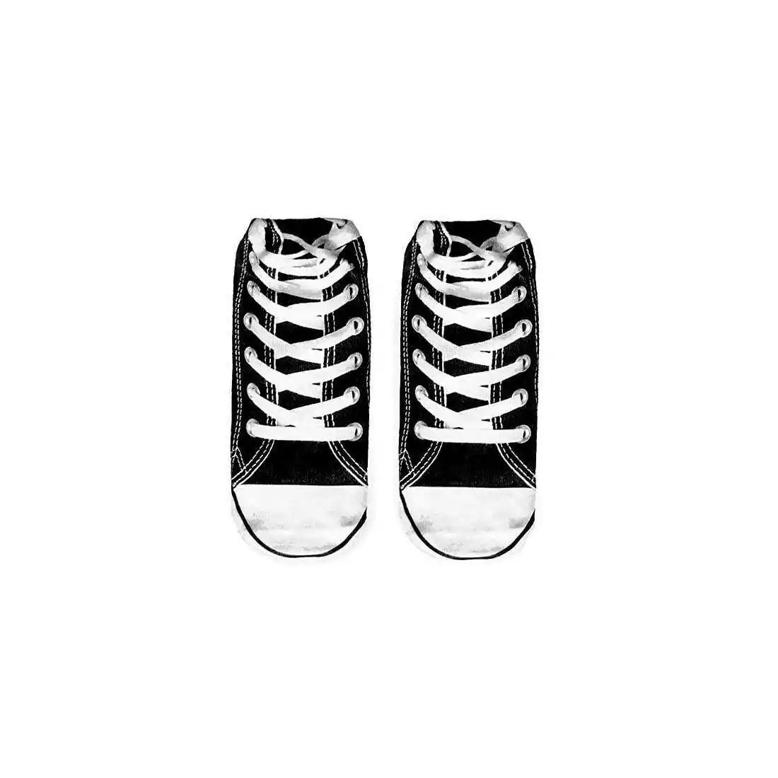 Paire de socquettes fun, originales et rigolotes, décorées baskets/sneakers noires à lacets blancs.