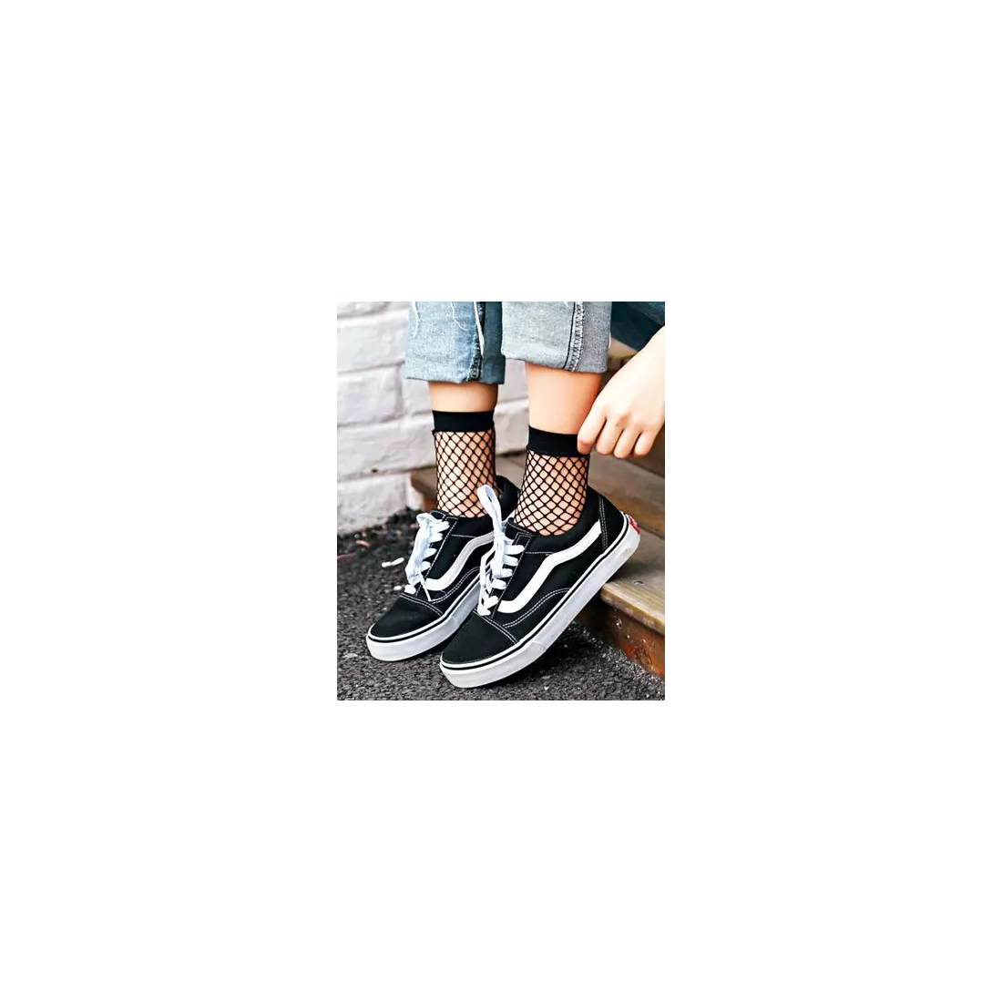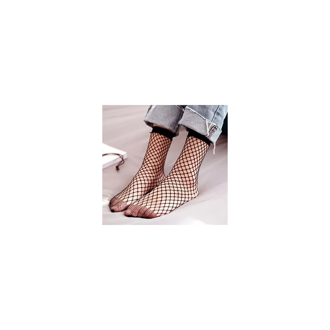 Féminine paire de chaussettes courtes, souples et agréables, en résille à mailles noires.