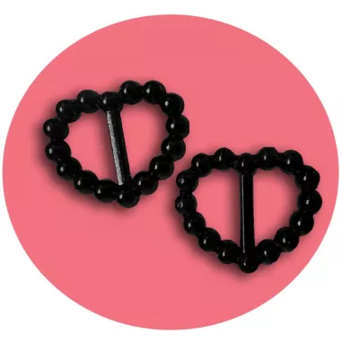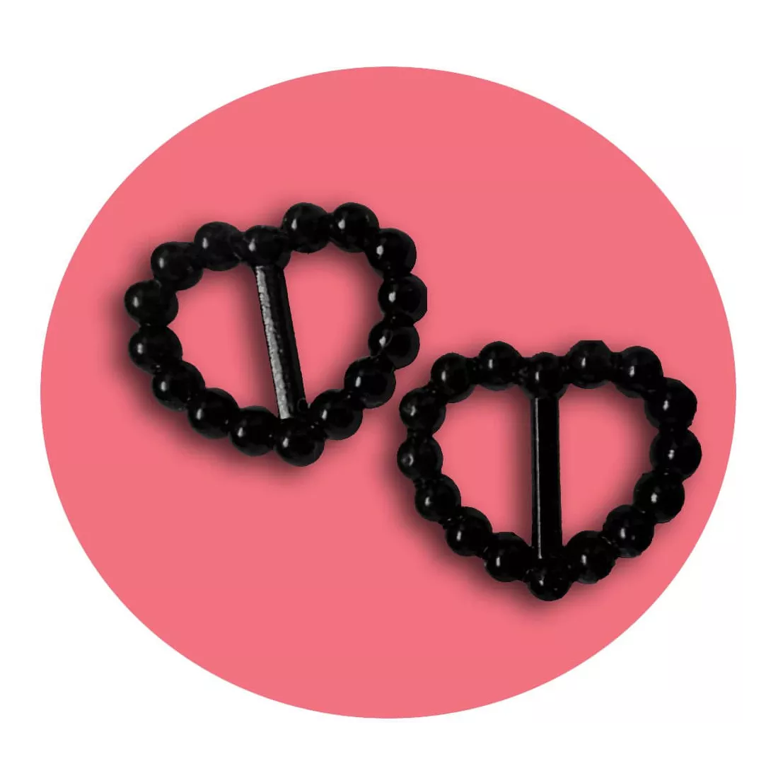 Paire de décorations de lacets en forme de mignons petits coeurs façon perles noires, à enfiler joliment sur vos lacets.