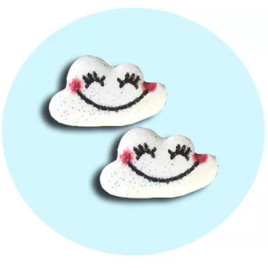Set de 2 décorations de lacets, en forme de petits & mignons nuages blancs, dodus, souriants et discrètement pailletés: so kawaii !