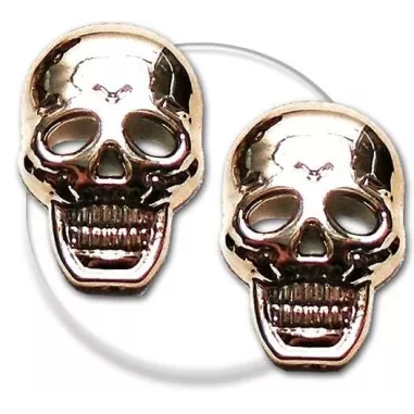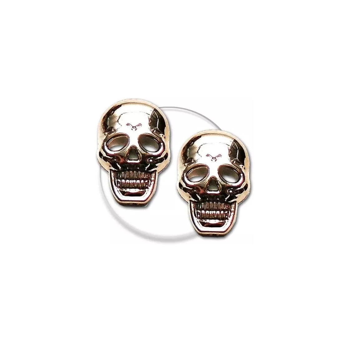 Paire de décorations de lacets, en forme de petites têtes de mort en 2D, dorées & brillantes : effrayants , souriantes et rutilantes...