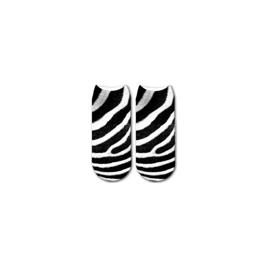 Paire de socquettes blanches, avec un effet fourrure de zèbre en noir et blanc réaliste, pour des pieds sauvages mais au chaud !