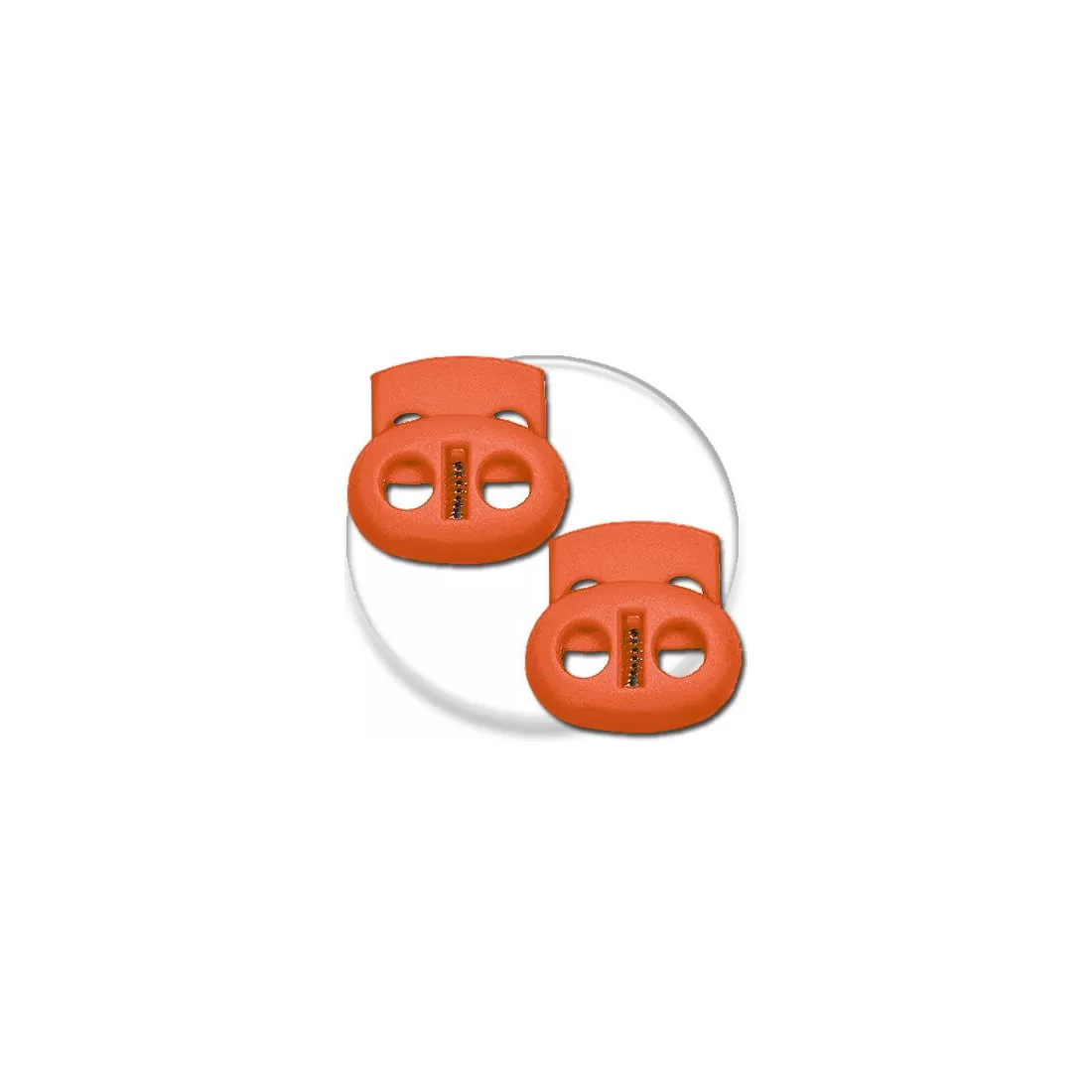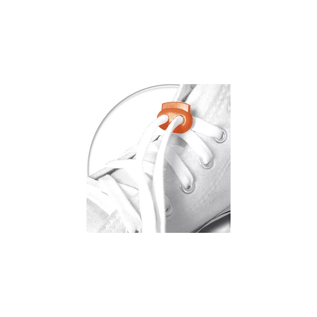 Set de 2 bloqueurs-stoppeurs de lacets plats, colorés et efficaces, en orange.