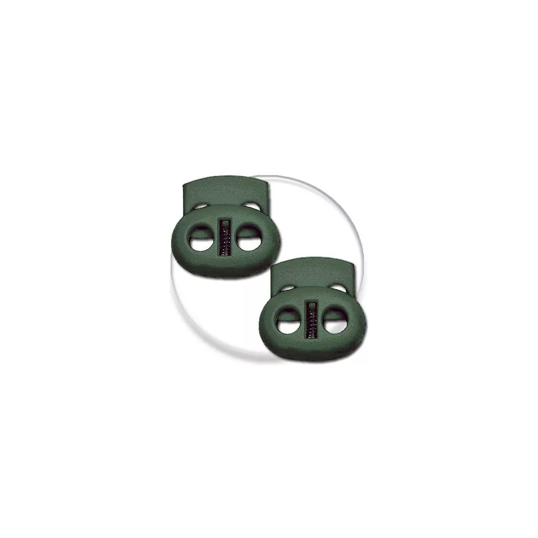 Set de 2 bloqueurs-stoppeurs de lacets plats, colorés et efficaces, dans un sombre vert kaki.