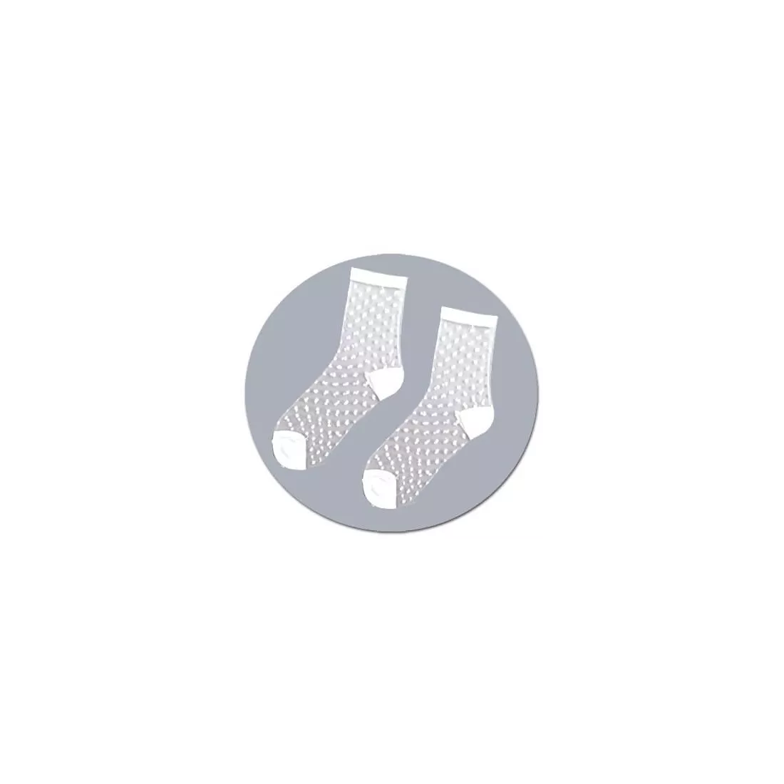 Paire de chaussettes transparentes à bordures blanches, fines & extensibles, élégamment ajourées de pois blancs.