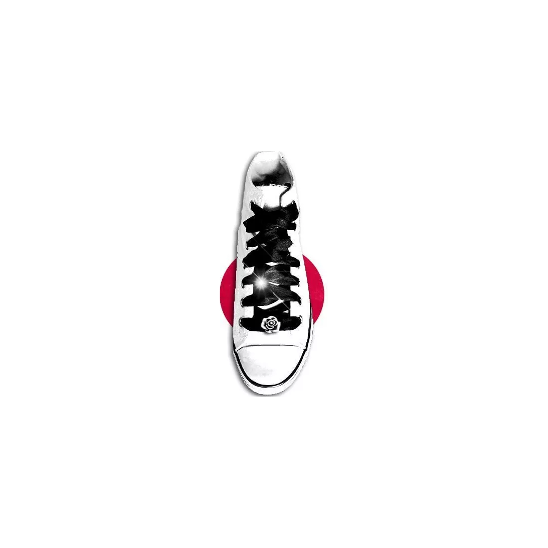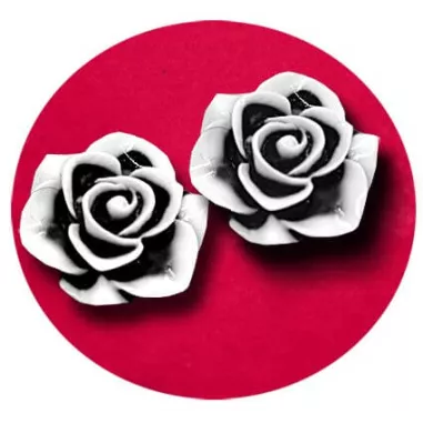 Paire de décorations de lacets en forme de rose bicolore, en volume 3D, aux pétales en noir et blanc, graphiques et féminines.