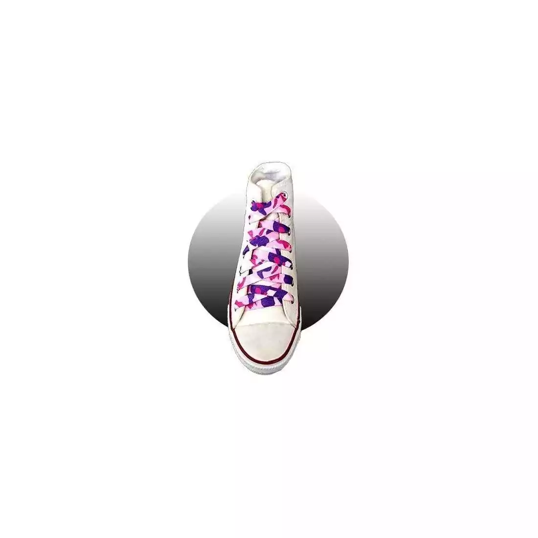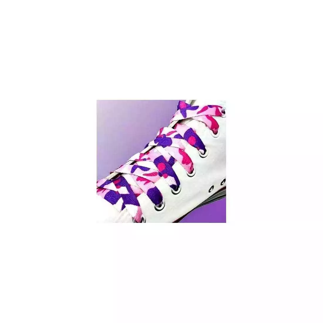 Jolis lacets de chaussures plats, féminins et originaux, aux motifs camouflage dans les tons roses.