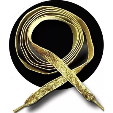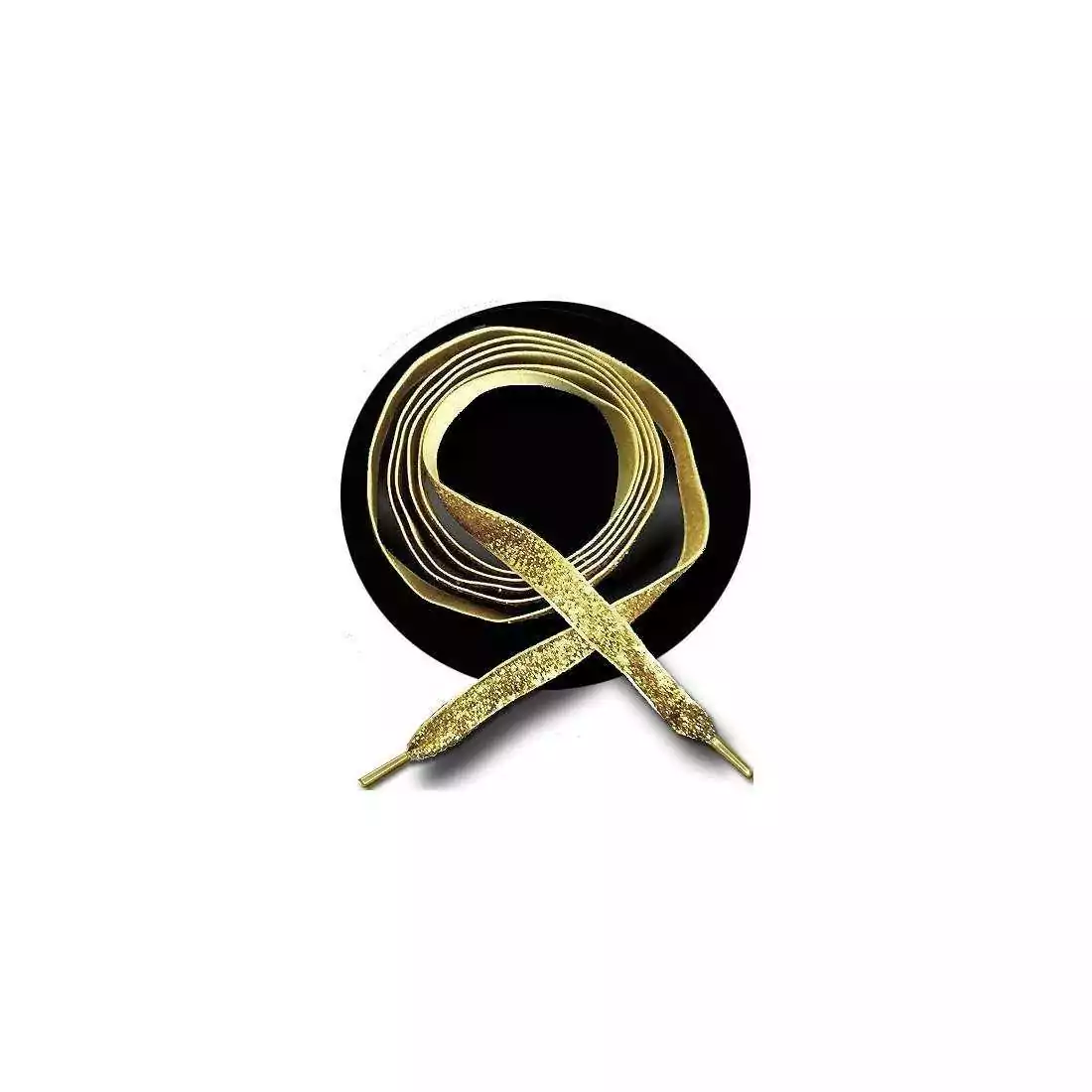 Paire de lacets de chaussures en velours pailleté doré avec un joli rendu brillant et attirant