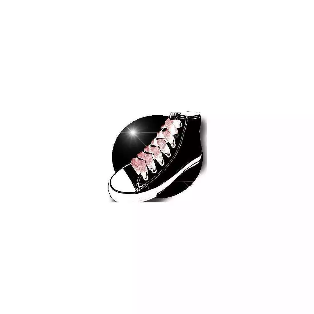 Paire de lacets de chaussures, originaux et féminins, en satin, dans un joli coloris nude actuel et tendance, agrémentés de minuscules paillettes dorées.
