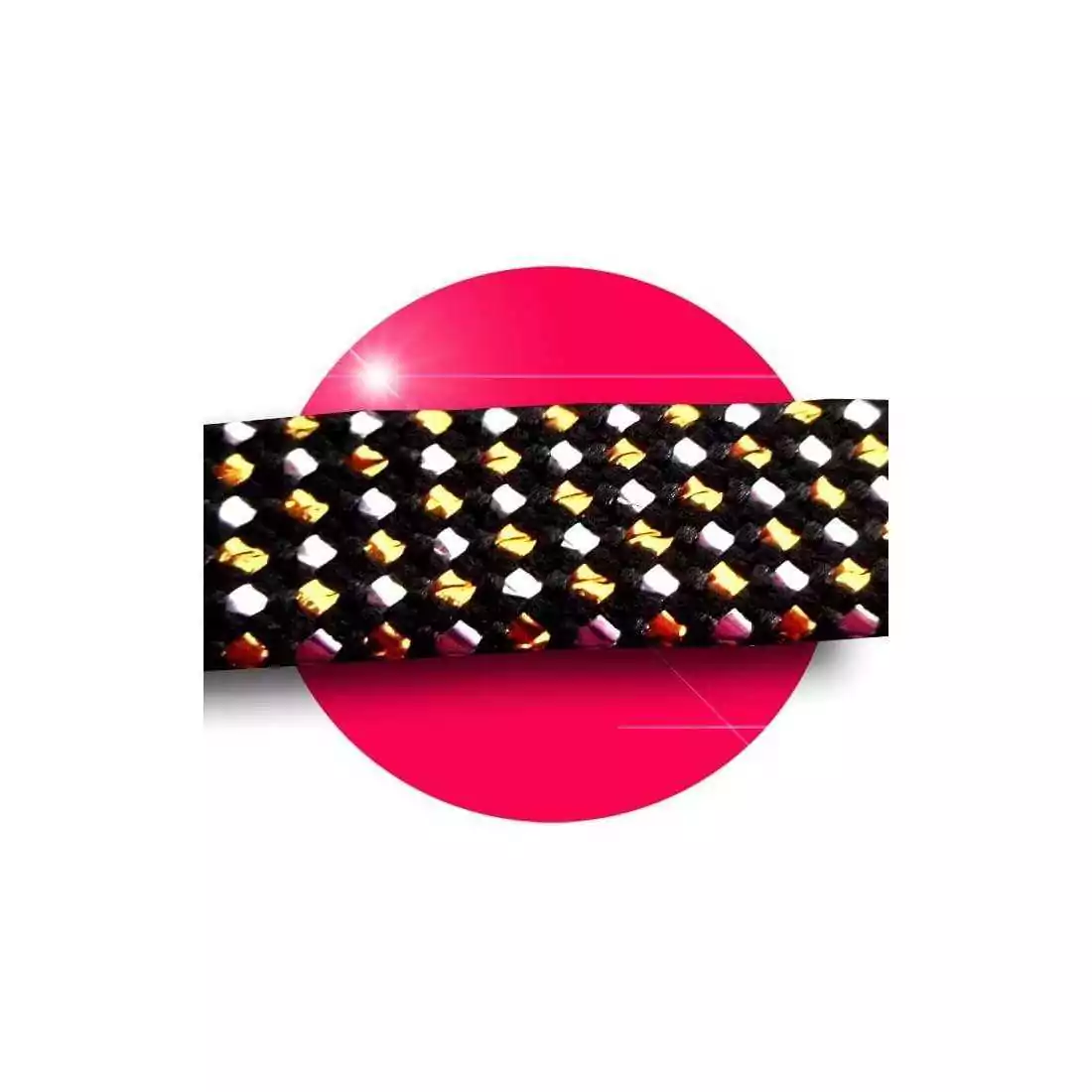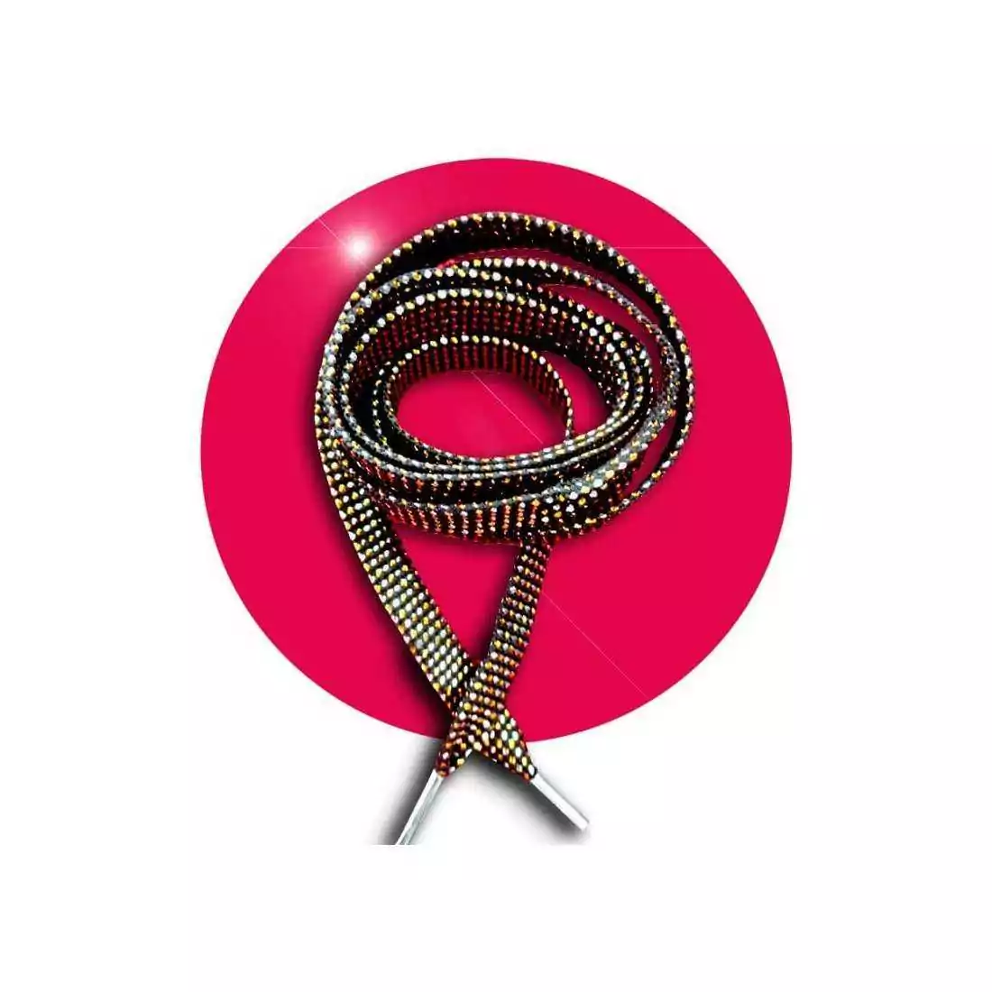 Paire de lacets de chaussures plats, en noir profond souligné d'une multitude de petits points argentés et dorés, pour un original effet facettes & brillant.