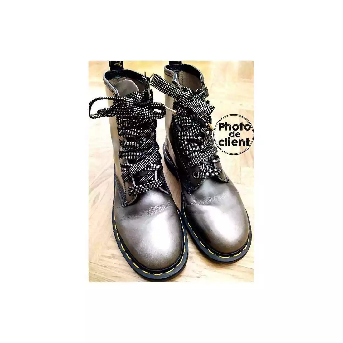 1 paire x lacets noirs facettes argentées dorées