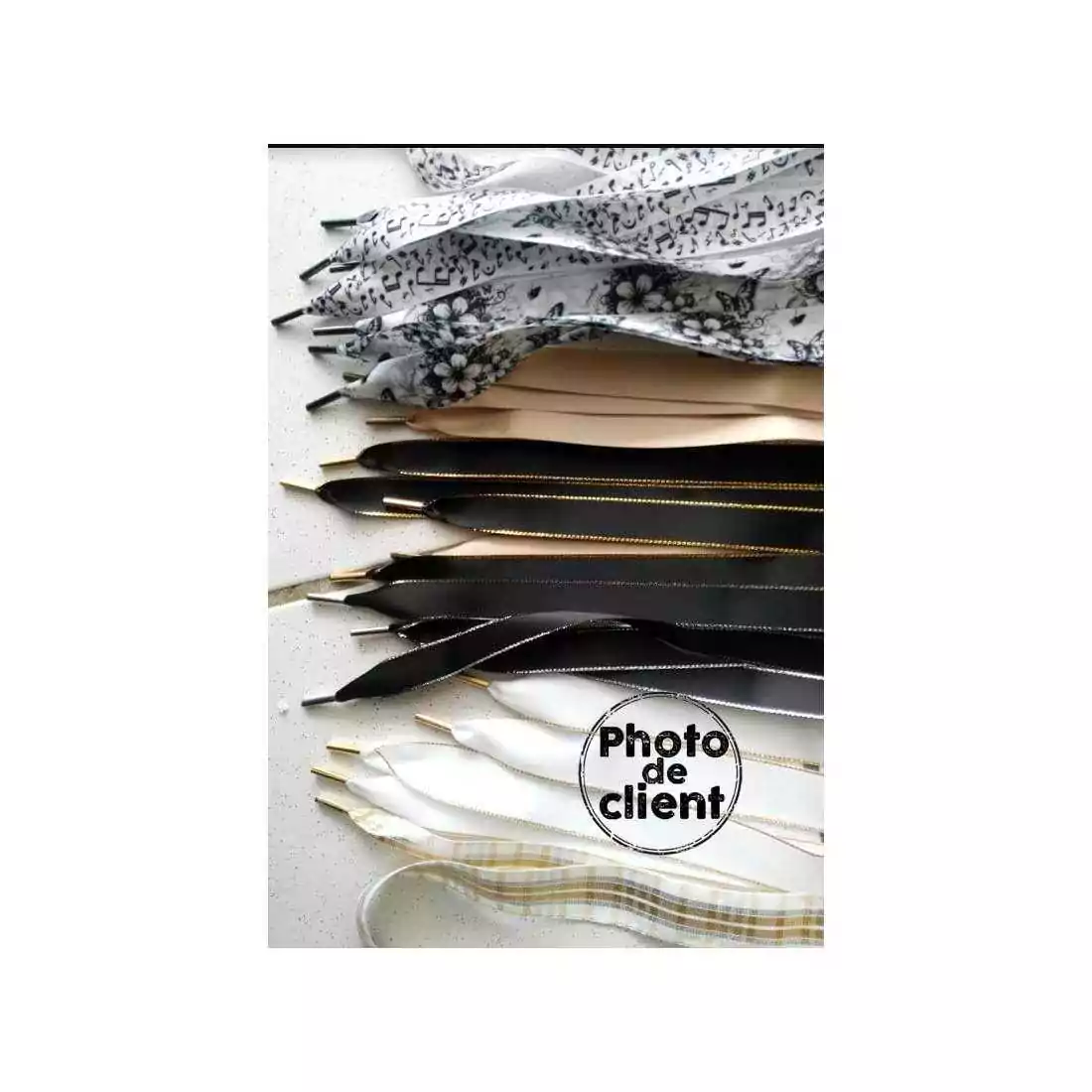 1 paire x lacets larges satin blanc & doré
