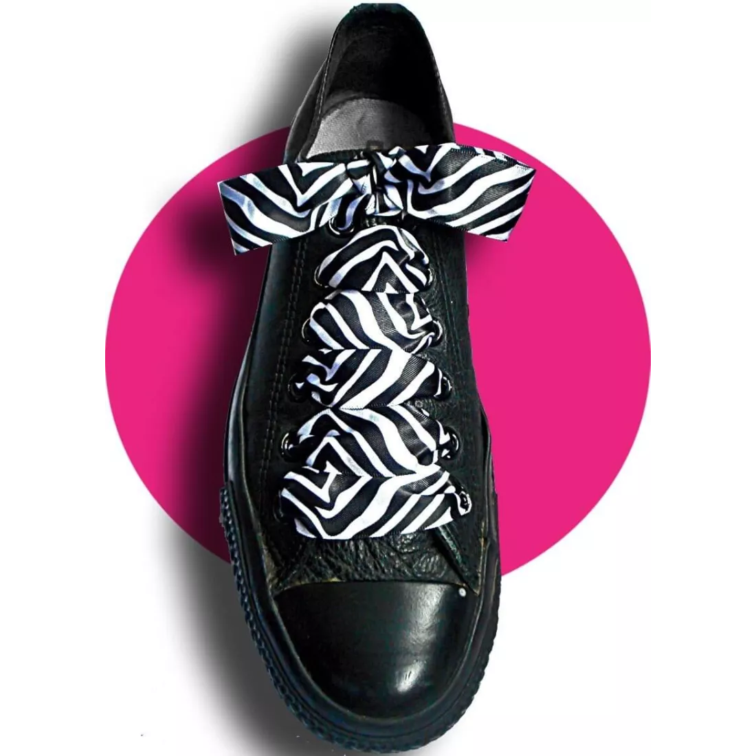 1 paire x lacets larges satin zèbre noir blanc