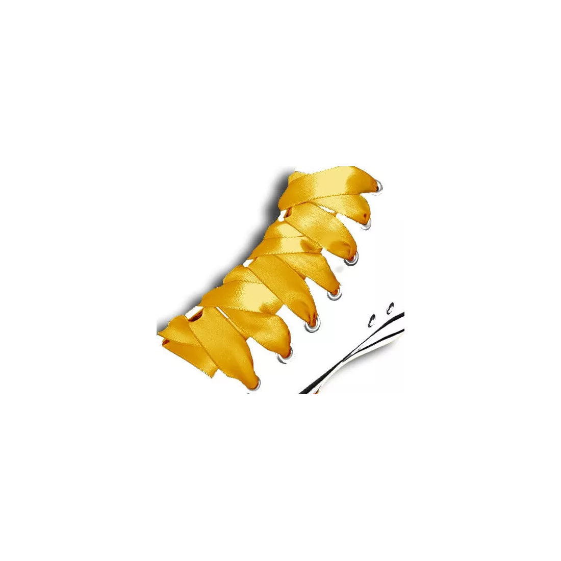 Lacets de chaussures, en satin féminin & soyeux, dans un original et chaleureux coloris jaune moutarde.