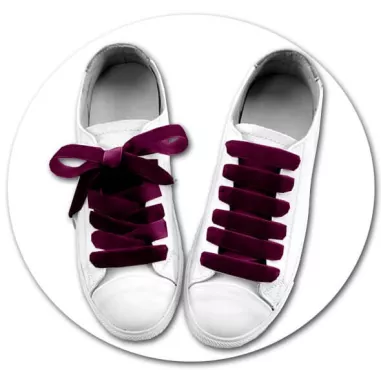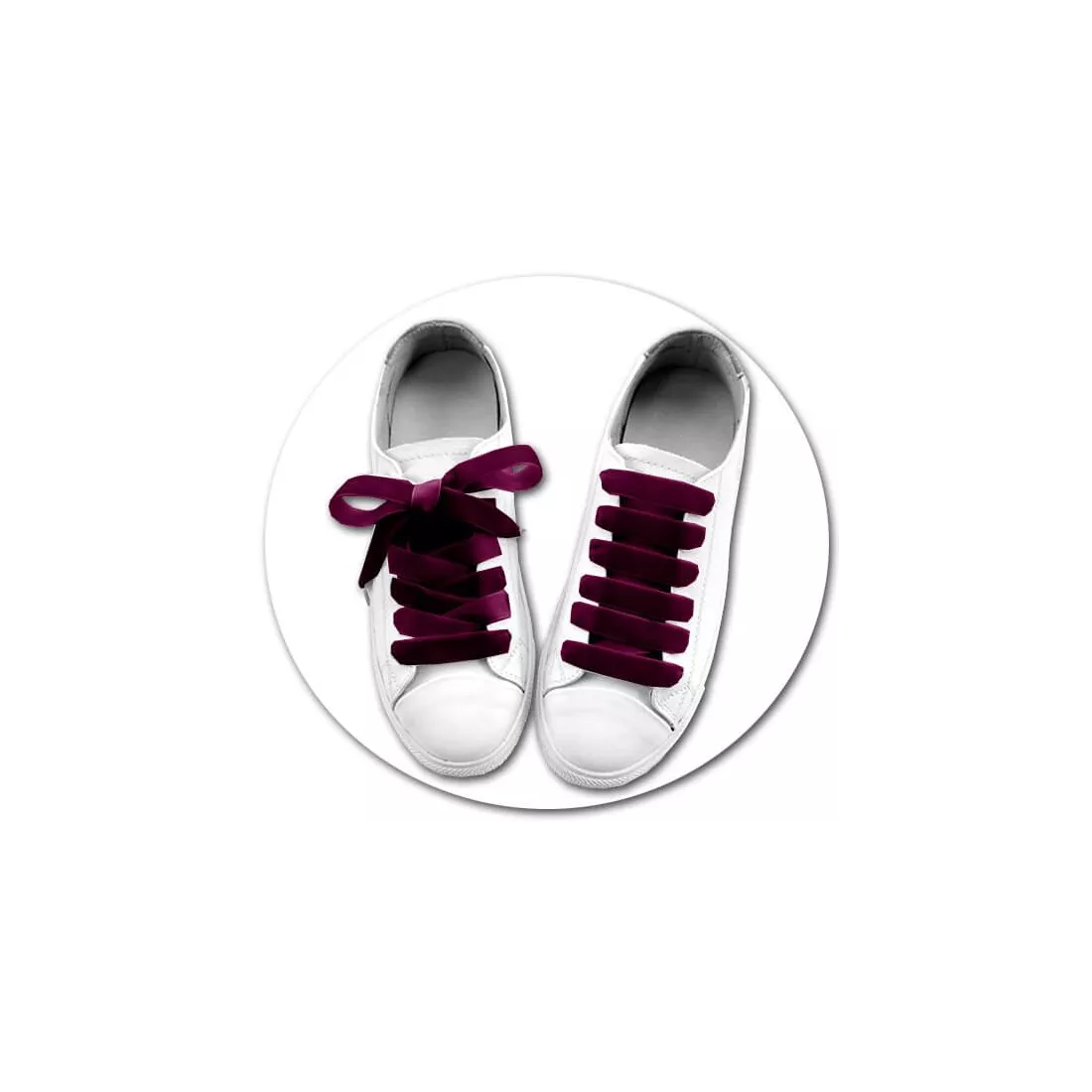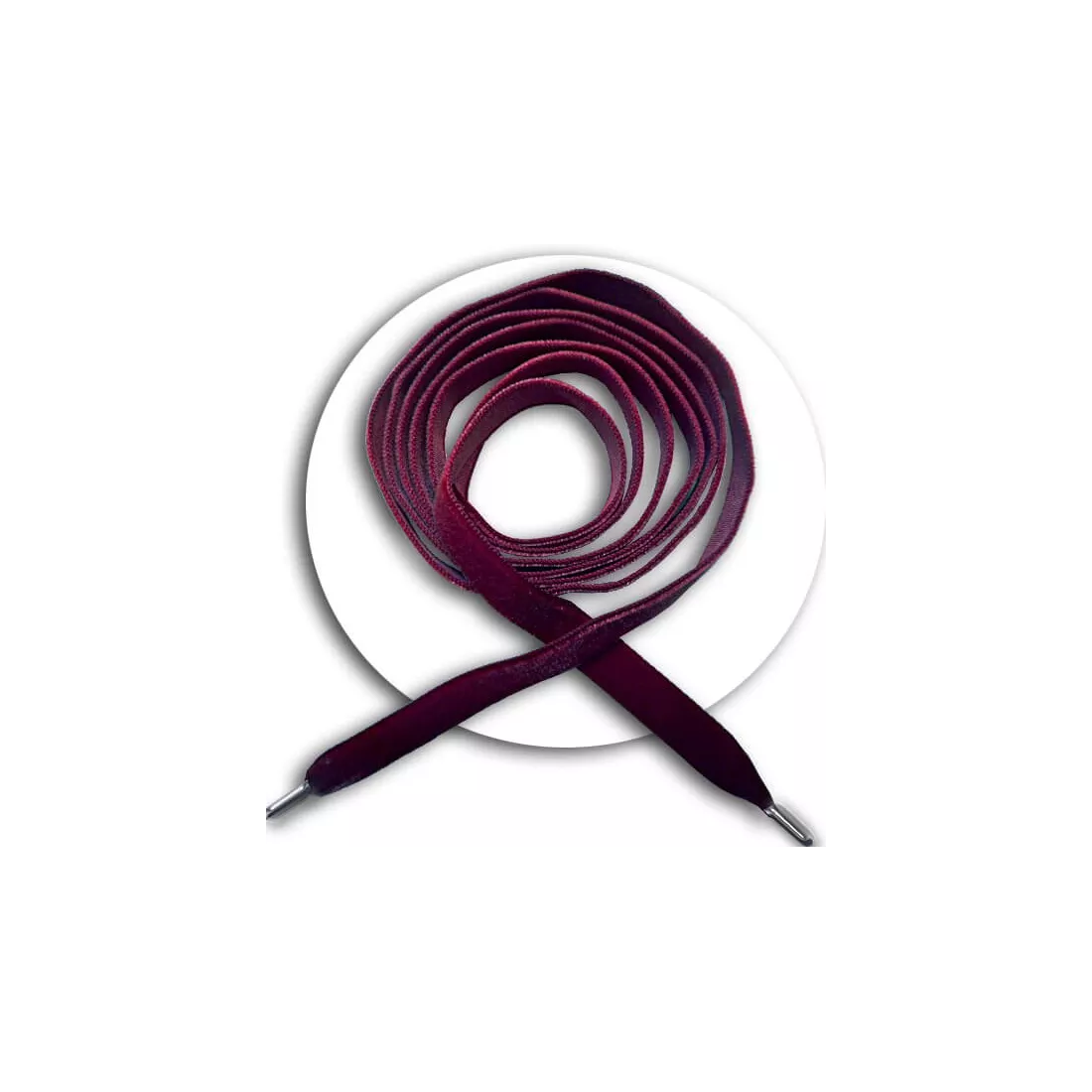 Lacets de chaussures fins et habillés, en velours ras, dans un superbe coloris bordeaux dense et élégant, à lacer sur des chaussures blanches, brunes, noires , roses.