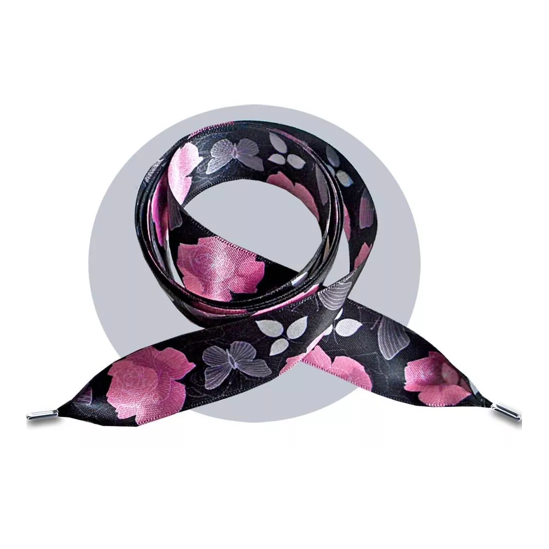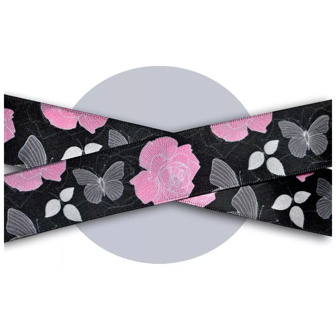 Lacets satin large noir fleuris gris & rose pour vos…
