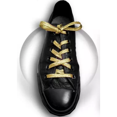Paire de lacets plats, métallisés, dans un superbe coloris doré, au rendu pailleté & brillant pour magnifier toutes vos toutes chaussures.