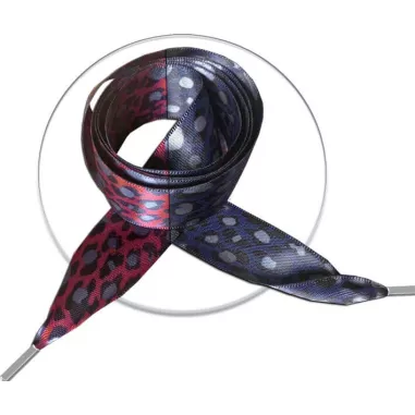 1 paire x lacets larges satin panthère rouge / bleu