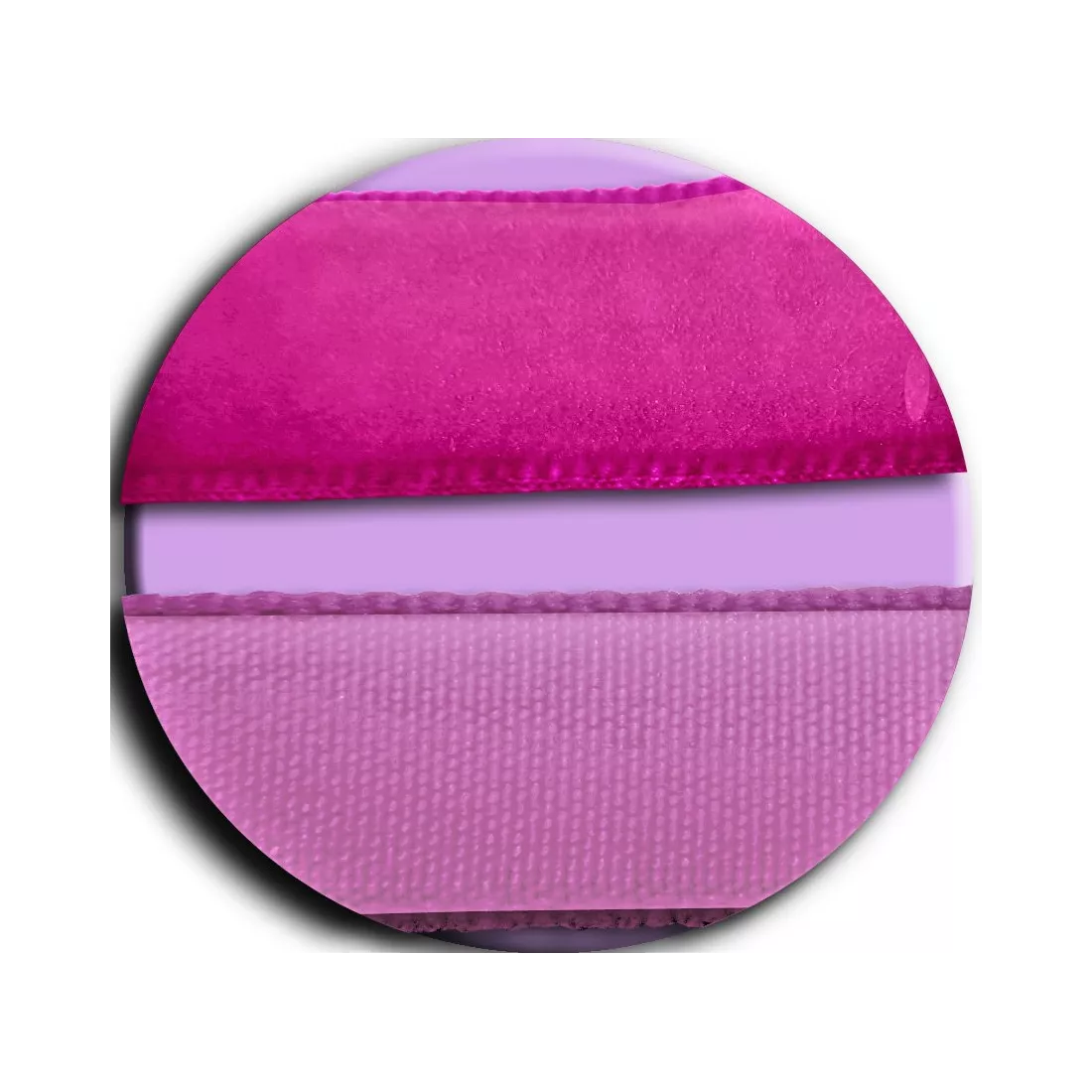 Velours rose sur le recto et matière tissée mate rose sur le verso