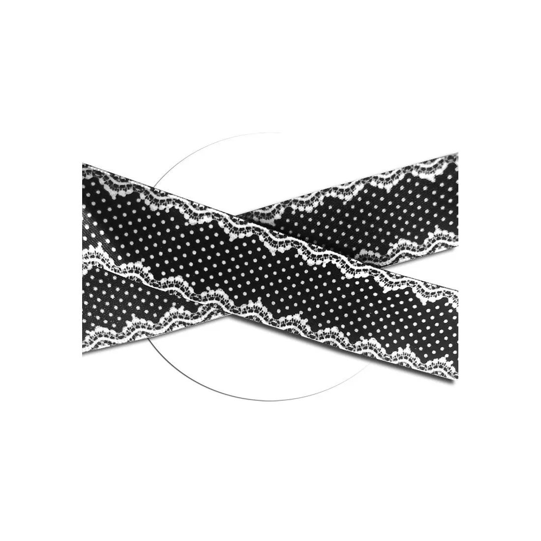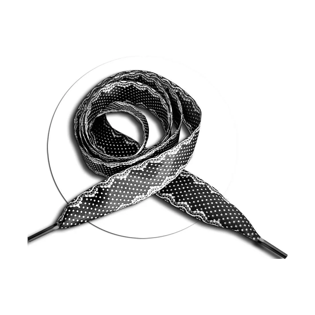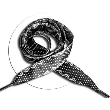 Lacets de chaussures en satin noir motifs pois et dentelle