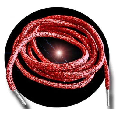 Paire de lacets ronds et métallisés dans un magnifique rouge dense & élégant et au rendu pailleté & brillant gloss.