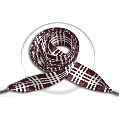1 paire x lacets larges satin marron carreaux écossais