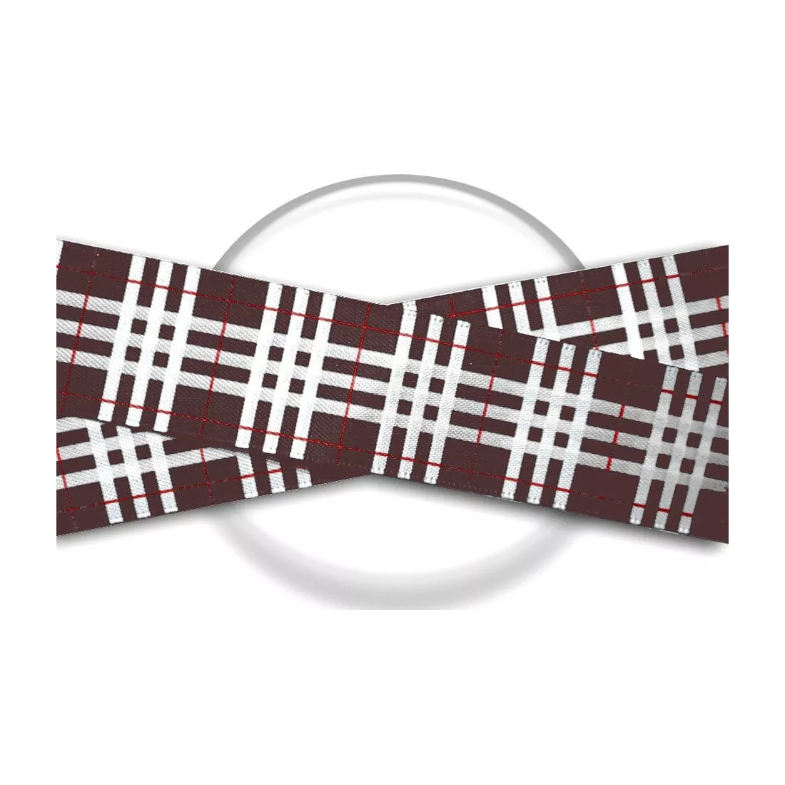 Paire de lacets de chaussures, en satin large, décorés façon tartan à carreaux écossais, en marron café, rouge et blanc, pour un rendu chic, sobre et élégant