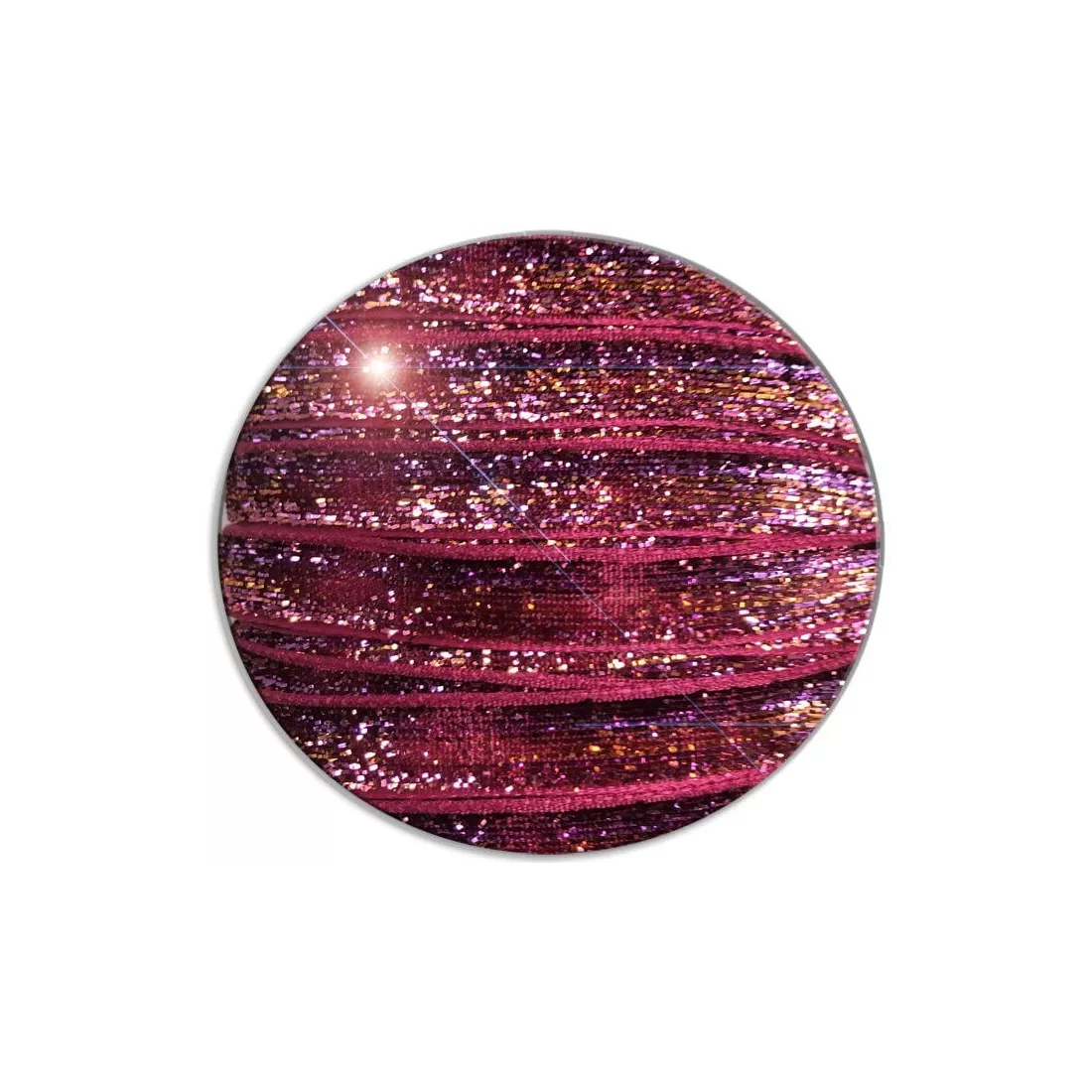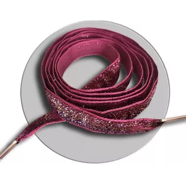Paire de lacets de chaussures en velours pailleté roses brillants et scintillants,  dans un original dégradé de couleurs violet, cuivré et rose vif.