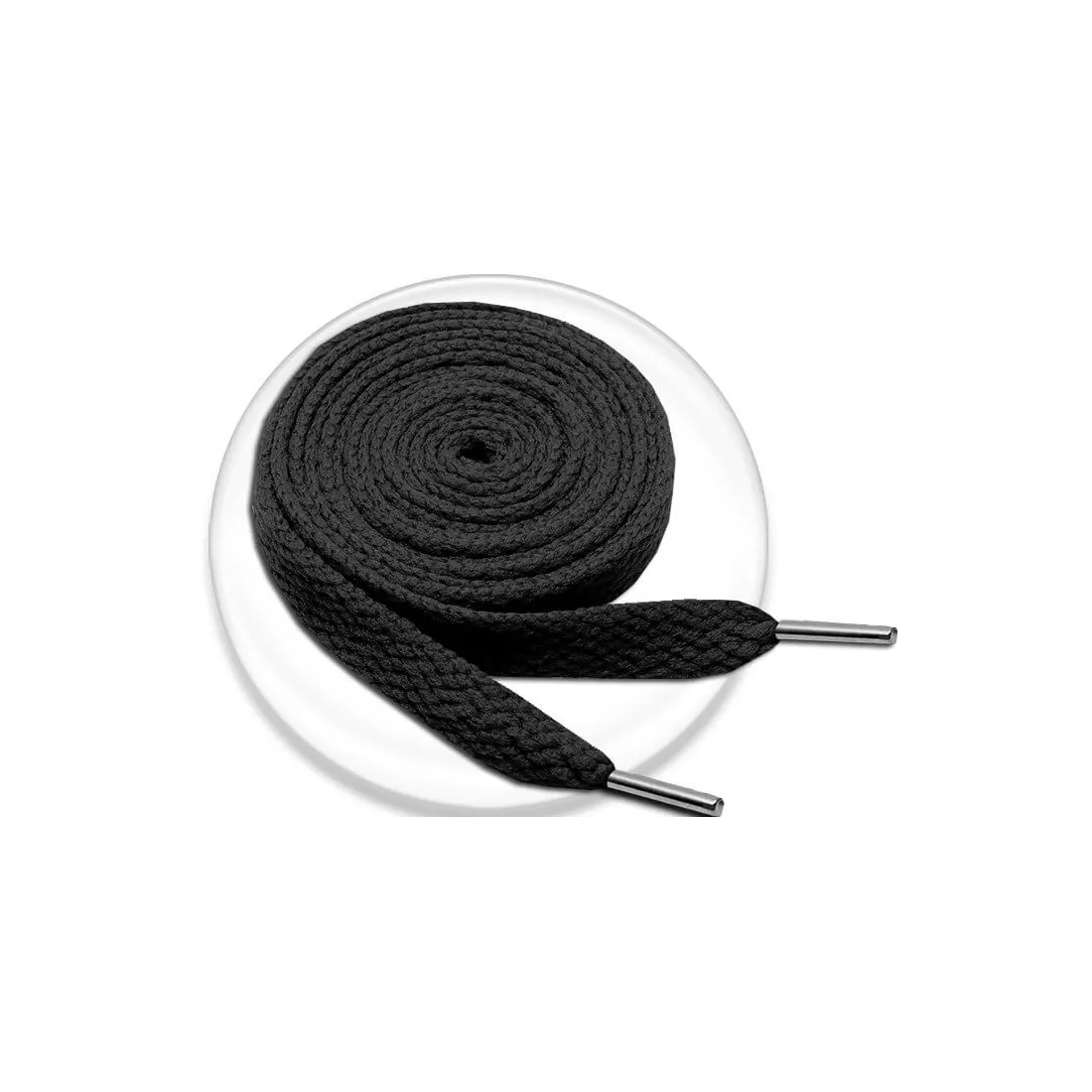 Lacets de chaussures, fins et plats, dans un incontournable coloris noir mat et profond.
