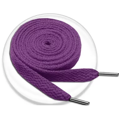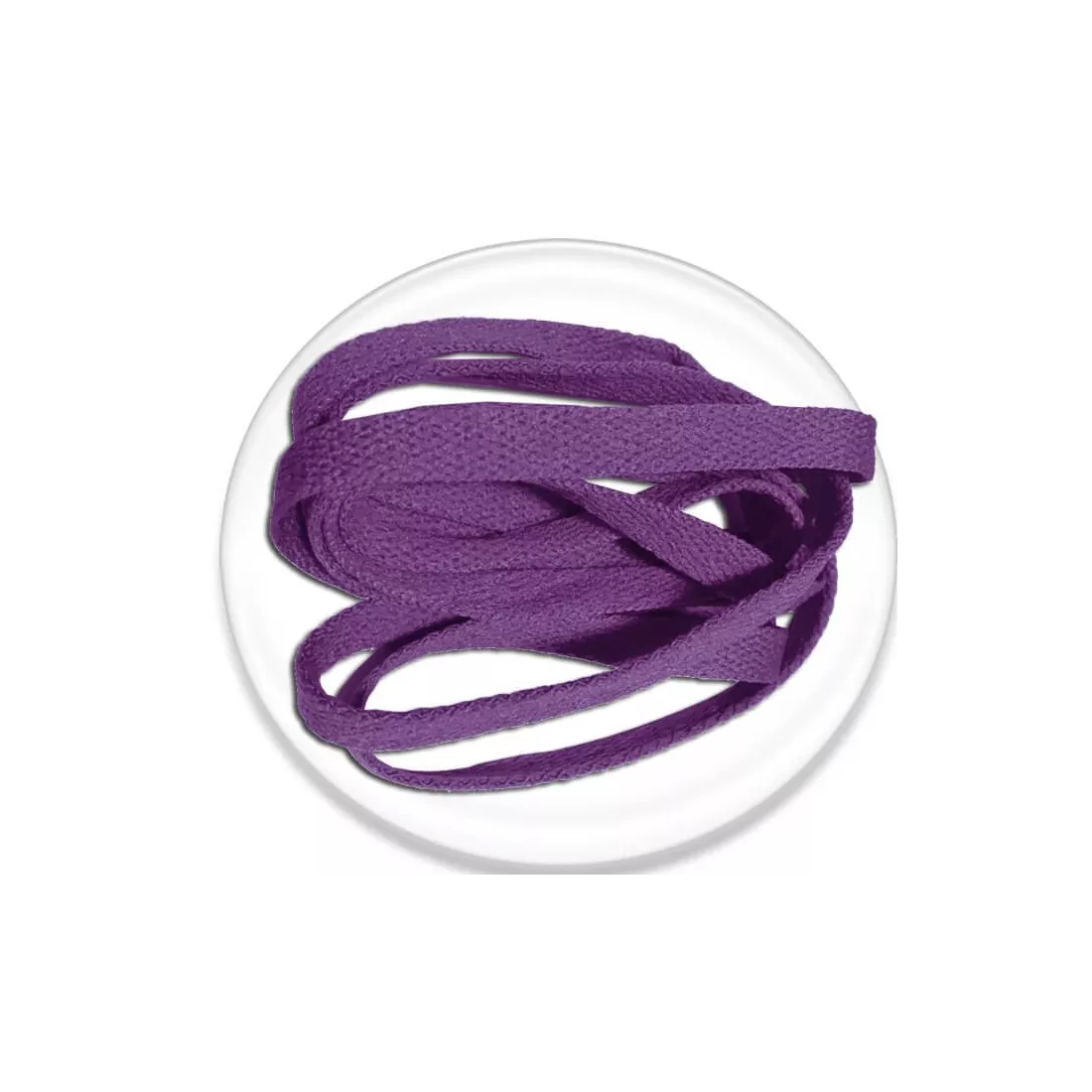 Lacets de chaussures, fins et plats, dans un beau coloris violet foncé.
