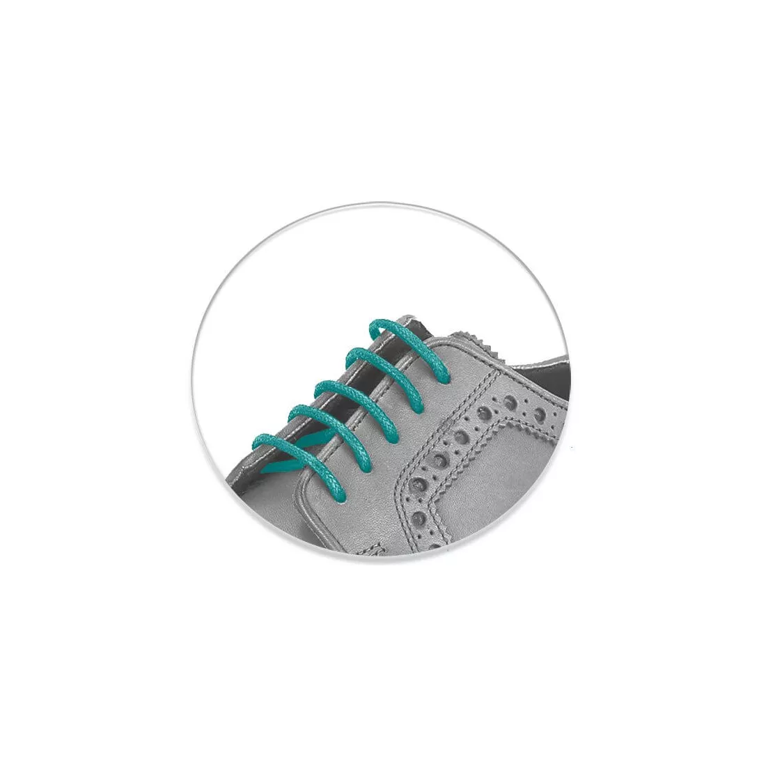 Lacets de chaussures cirés, ronds et fins qui habilleront élégamment vos chaussures fines et vos chaussures de ville,dans un superbe bleu-vert canard très tendance