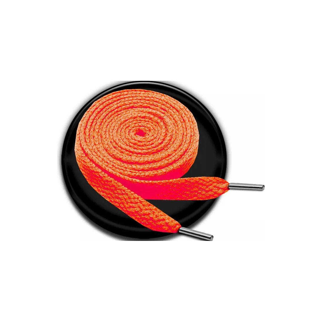 Lacets de chaussures, fins et plats, dans un bel orange fluo et flashy.