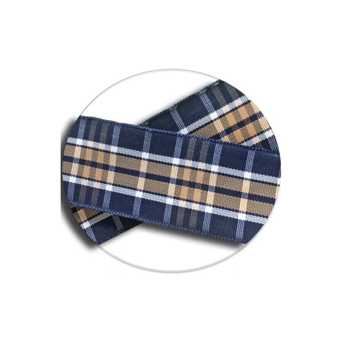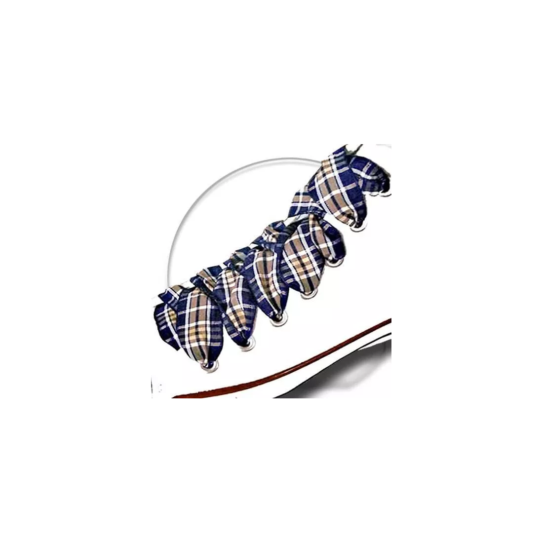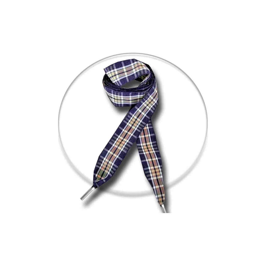 Lacets larges et souples, à carreaux écossais dans d'élégants coloris de bleu marine et de marron moka, surlignés de blanc.