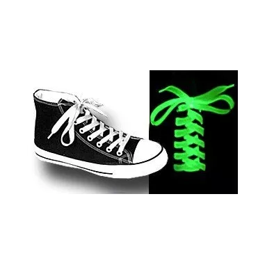 Paire de lacets plats 2 EN 1 : colorés le jour et phosphorescents dans la nuit et l'obscurité, jolis et sécuritaires.