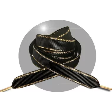 Lacets plats noirs liseret doré