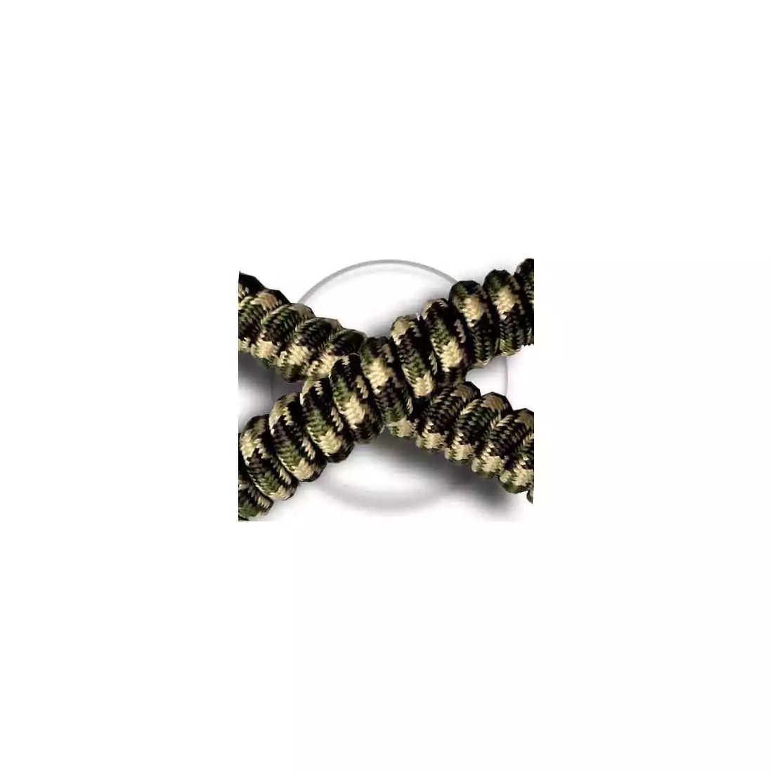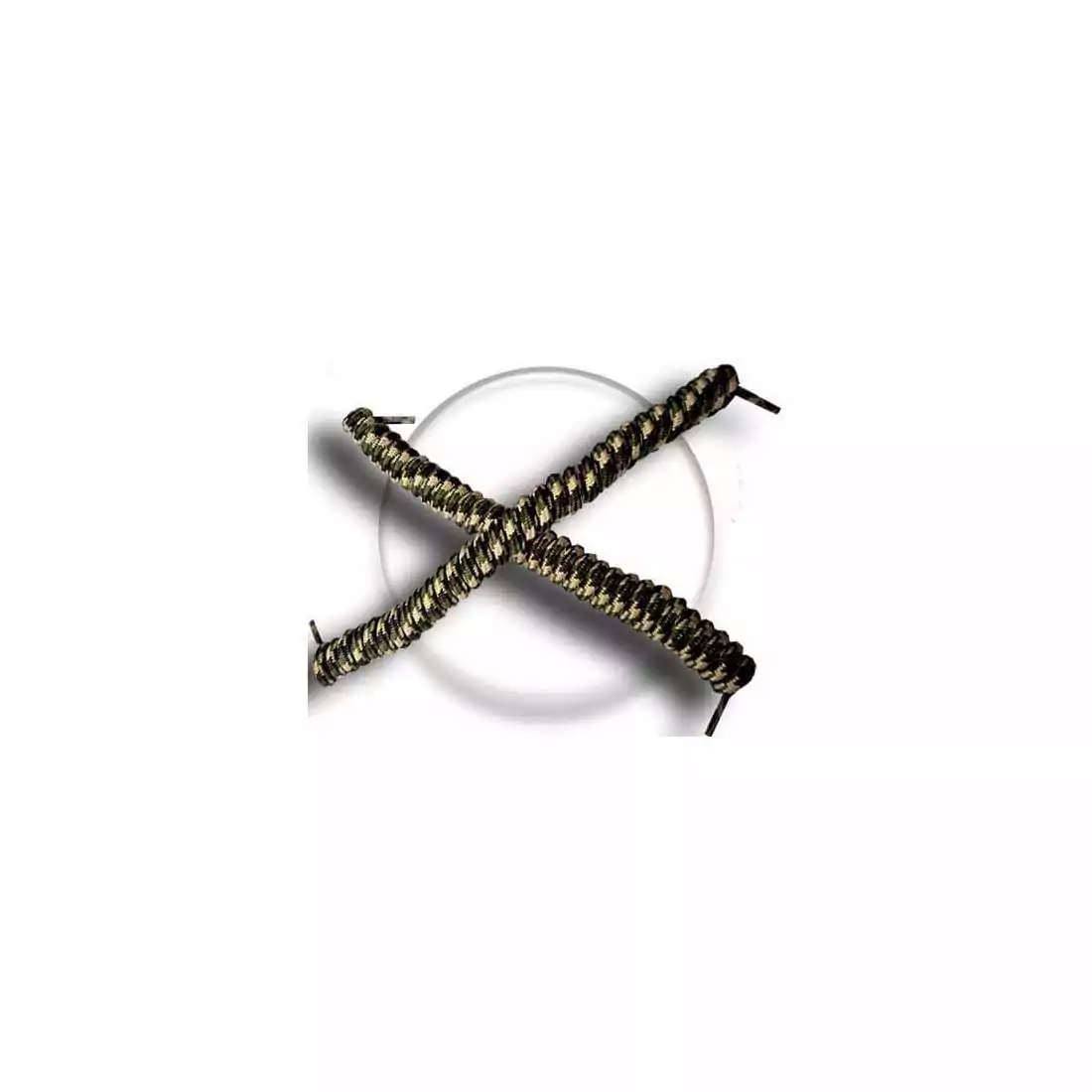 Paire de lacets de chaussures ressorts élastiques, à lacer 1 seule fois, sans noeud à faire et faciles à vivre, au rendu camouflage en beige, kaki et marron foncé.