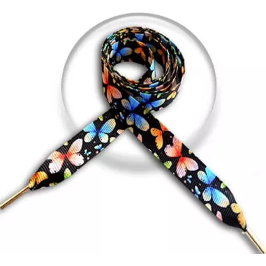 1 paire x lacets noirs papillons multicolores