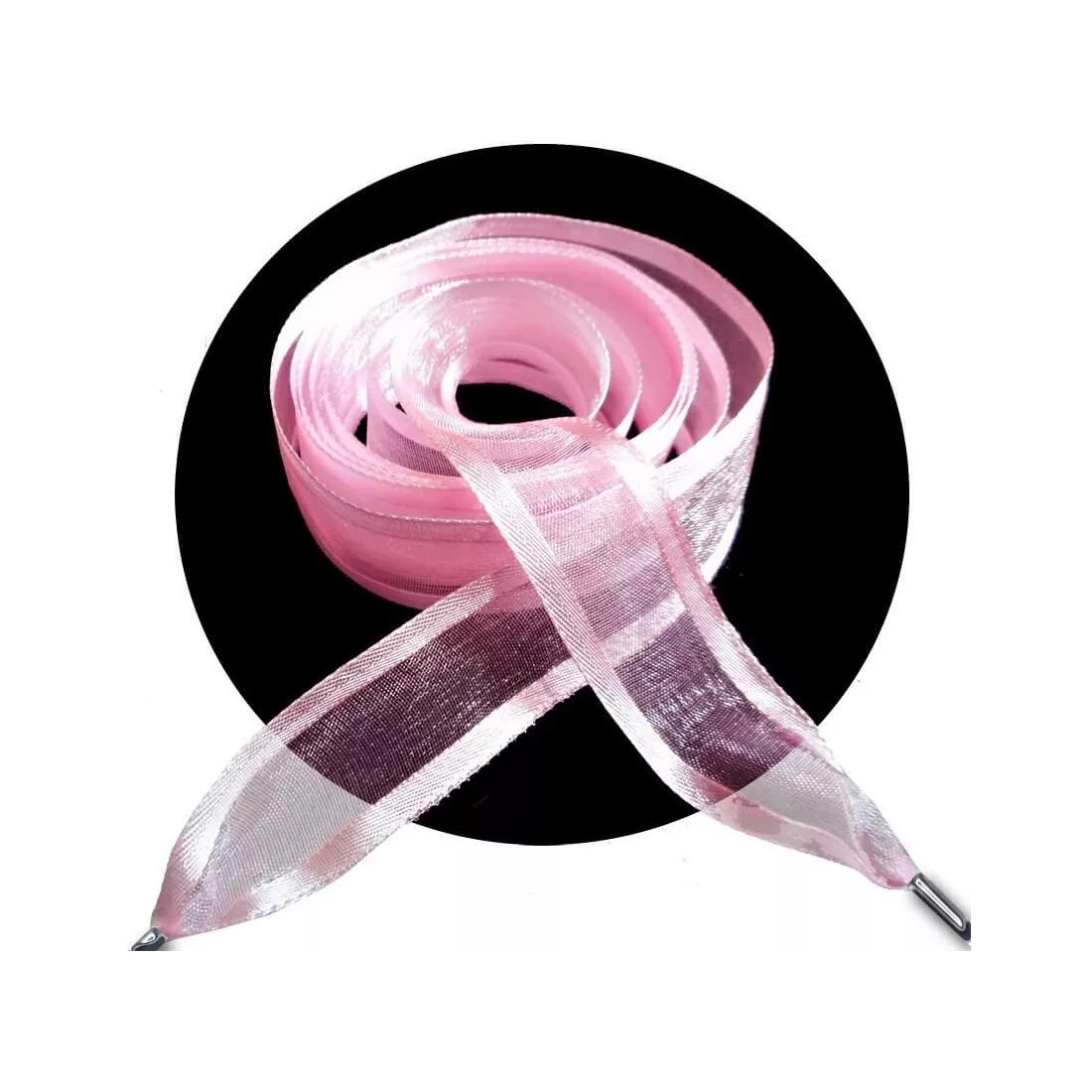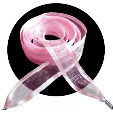 Paires de lacets, larges et légers, en ruban d'organza dans un clair rose pâle et joliment gansés en satin rose assorti, pour un rendu original et féminin