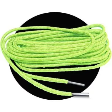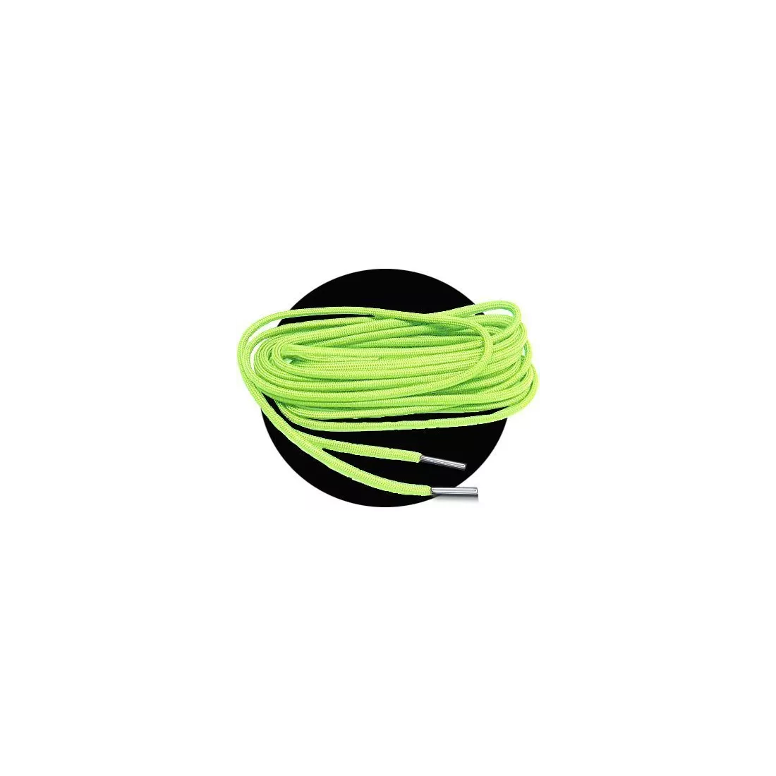 Paire de lacets de chaussures ronds, en paracorde solide et résistante (randonnée, course, paraboots, etc ...), dans un lumineux et flashy coloris vert fluo / néon.