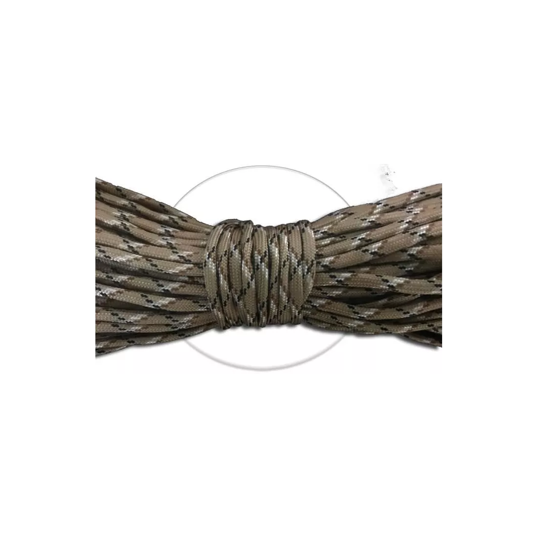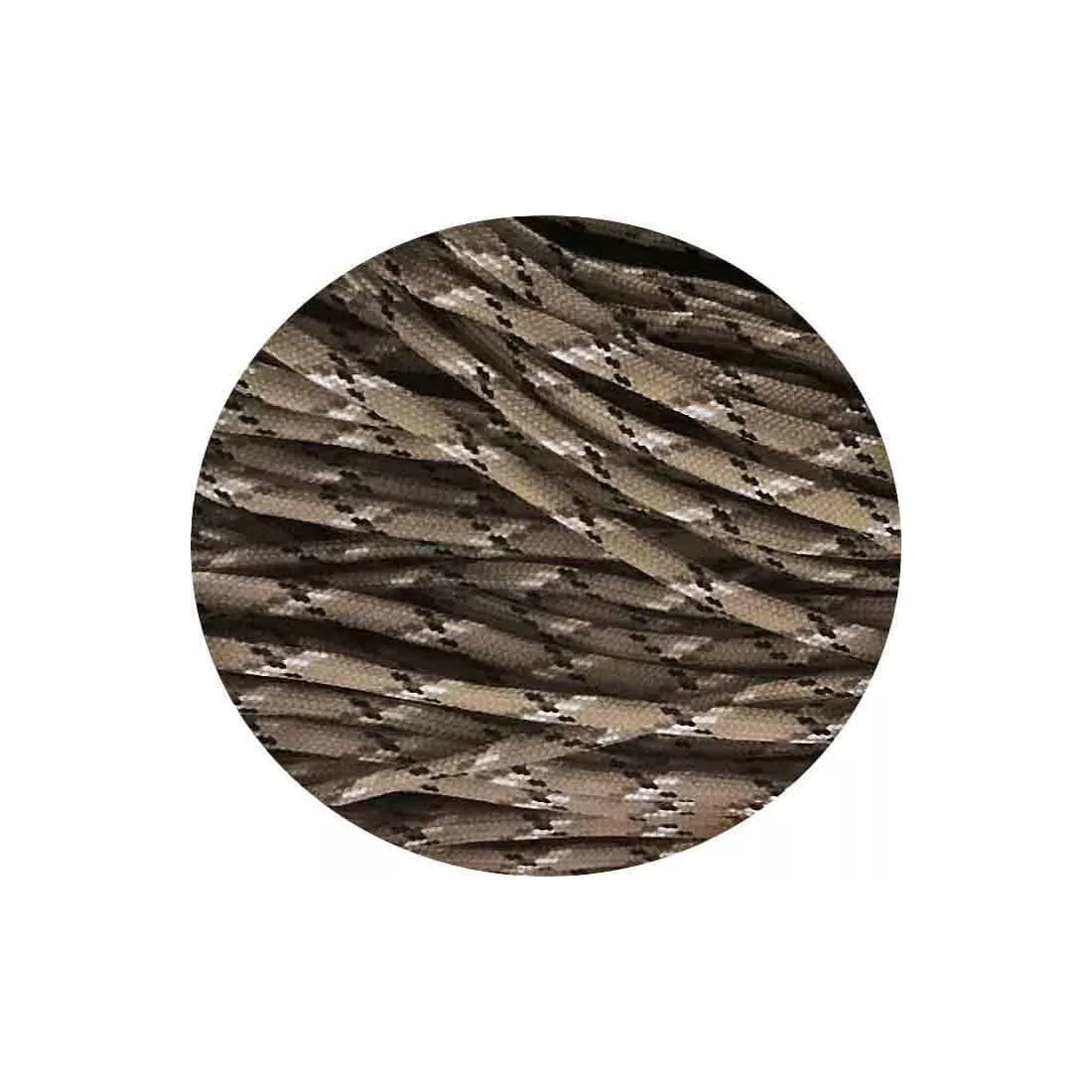 Paire de lacets de chaussures ronds, en paracorde solide et résistante (randonnée, course, paraboots, etc...) dans un magnifique coloris beige sombre tabac, surligné de brun, noir et blanc.