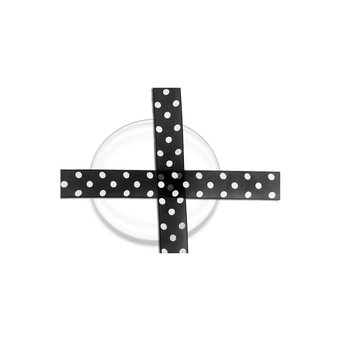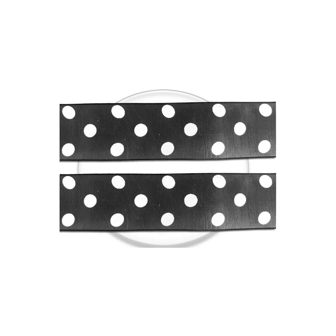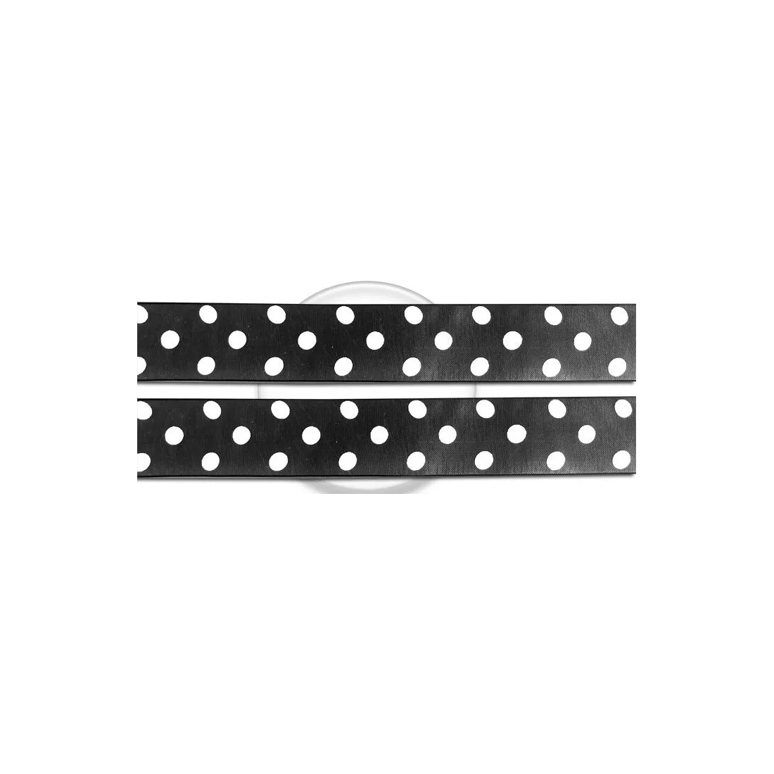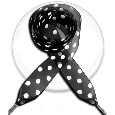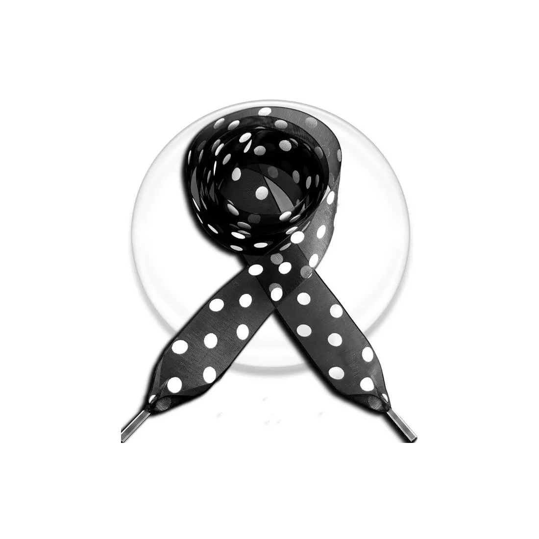 Lacets de chaussures en ruban organza noir profond, larges et légers, décorés de gros pois blancs, chics et sobres.